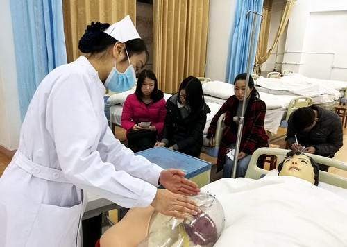比赛开始,同学们穿戴好工作服,有序进入考场。比赛期间同学们应用自己所学专业理论知识严格操作,动作流畅而专业,展现一名合格护理人员的风采。