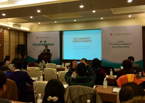 此次论坛旨在促进中国农村卫生发展,加强西部地区乃至全国相关研究机构、学者及基层卫生机构工作人员的交流与合作。四川省卫生与计划生育委员会副主任徐旭、北京大学中国卫生发展研究中心孟庆跃主任、四川大学华西公共卫生学院李晓松院长出席开幕式,并分别在开幕式上致辞。六十多位来自全国各地的卫生行政人员、相关领域的研究学者及基层医疗工作者齐聚蓉城,参加本次学术论坛,开展了丰富的主题演讲和对话讨论,包括四个分议题:(1)卫生政策与农村卫生发展;(2)乡镇卫生院与农村卫生发展;(3)乡村医生与农村卫生发展;(4)健康信息与农村卫生发展。