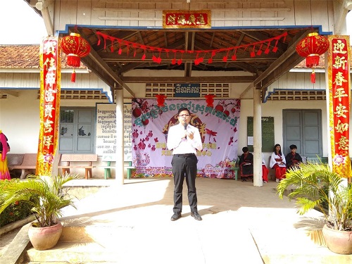 上午10点,新年活动正式开始。谢莫尼勒院长致辞,他感谢大家的不断努力,使得汉语在大岛有了显著的发展,希望越来越多的学生学习汉语,努力提升汉语水平。他说,中国老师春节期间虽然不能回国,但是希望老师能在柬埔寨找到回家过新年的感觉。并表示,孔子学院将会一直给予大岛洪森中学汉语中心支持,衷心祝愿大岛洪森中学汉语中心越办越好。