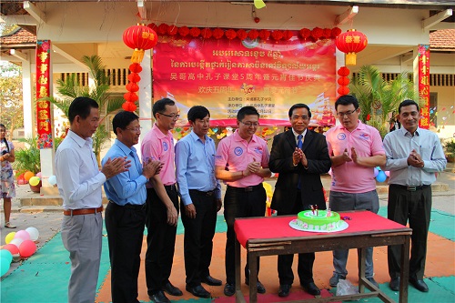2月12日,柬埔寨孔子学院吴哥高中孔子课堂成立五周年庆典暨元宵佳节庆祝活动在暹粒省吴哥高中举行。暹粒省副省长金财恒(H.E.KIM Chhaihieng)、暹粒省教育厅副厅长李布纳(LY Bunna)出席活动,柬埔寨孔子学院院长谢莫尼勒(H.E. CHEA Munyrith)、中方院长夏修龙、吴哥高中校长任诺特(RIN Lot)及吴哥高中教师、学生和家长400余人参加了庆典。