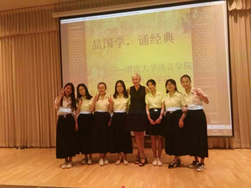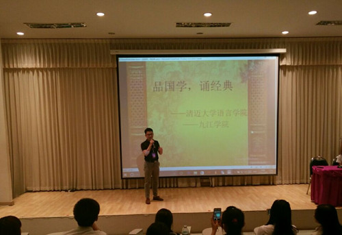 为传承和弘扬中国传统文化精粹,促进对外文化交流,提高学生的国学素养,3月25日下午,九江学院赴泰交流生在泰国清迈大学语言学院开展了以“品国学,诵经典”为主题的国学微课堂活动。清迈大学语言学院主任张璇出席此次活动,Monique老师、孔子学院何鹏老师以及全体交流生参加了此次活动。