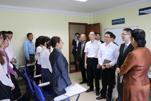 随后,索皮克达维国务秘书与檀勍生参赞在与会嘉宾的见证下,共同为国会参议院联络与监察部汉语教学点揭牌。