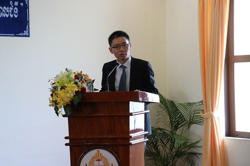 檀勍生参赞首先致辞,他热烈祝贺柬埔寨国会参议院联络与监察部汉语教学点开班,他说,中柬关系友好,中国已成为柬埔寨第一大投资国,随着两国人员的交往越来越密切,汉语热不断升温,学习汉语的人越来越多。中国政府也将应柬埔寨民众的需要,提供更多的奖学金,资助汉语学习者赴中国留学,以加强中柬两国的人文交流。