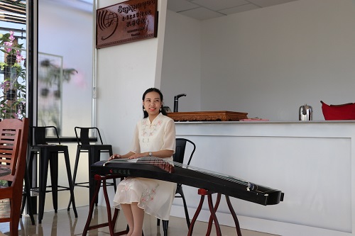志愿者教师田唱老师进行古筝表演
