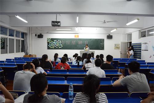 5月19日,旅游与国土资源学院各班在竞知楼开展以“旅游让生活更幸福”为主题的丰富多彩的“中国旅游日”系列活动,加深同学们对旅游日的了解,对“中国旅游日”宣传起到积极作用,同时也对同学们文明出行起到良好的教育作用。