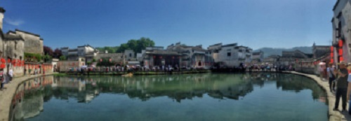 宏村,位于徽州六县之一的黄山市黟县东北部,是古黟桃花源里一座奇特的牛形古村落。2000年11月30日,宏村被联合国教科文组织列入了世界文化遗产名录,是国家首批12个历史文化名村之一。湖光山色与层楼叠院和谐相处,自然景观与人文内涵交相辉映,是宏村区别于其他建筑布局的特色,这对于14级广编专业的莘莘学子而言,无疑是一场视觉与心灵上的饕餮盛宴。在皖南众多风格独特的徽派居民村落中,宏村是最具代表性的。既有山村野趣,又有水乡风貌,处处是景,步步入画,闲庭信步其间,其悠然之情也感染了前往拍摄的众多学生。