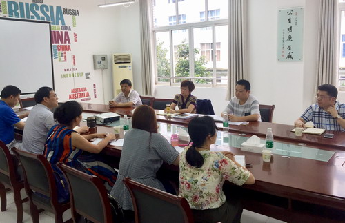 为适应高等教育发展的新形势和对人才培养的要求,更好地推进学院专业建设,外国语学院于7月2日下午在香远楼219室召开专业建设专题会,外国语学院院长韩琨、副院长柴克清、教学科研科科长王伟、院学术委员会成员桑龙扬教授、张金福教授、吴慧华教授、周志高教授和商务英语教研室主任章志红副教授、日语教研室主任王淑沅副教授参加了专题会,韩琨院长主持会议。