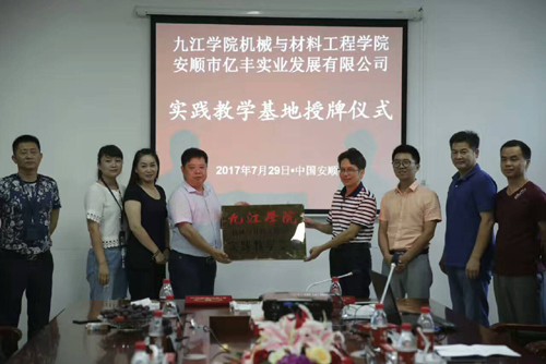 7月27日到30日,在机材学院党委书记陈胜才的带领下,汽车教研室教师丁志华、李军和乐海文一行四人赴贵州省安顺市亿丰实业发展有限公司开展校外实践教学基地的签约与授牌活动。亿丰实业发展有限公司董事长张绪剑、副总经理蔡徽萍、办公室主任范玉芬、董事长助理陈今等领导参加。