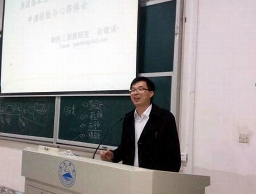 廖亮教授从评审者的角度、选题、创新点、摘要、立项依据等五个方面详细阐述了基金申请所面临的问题、解决的方法及其课题组所获8个项目间的关联与思考。余敬谋博士从分析申报指南、合作平台、科学问题凝练与提升等方面报告了成功经验与失败教训。张炳火博士就所获立项项目撰写过程中具体问题的思考、生活认知中科学问题凝练等方面报告了自己的感悟。刘可越博士从专家建议、基金本子图文撰写等方面阐述了自己的认识与思考。张化浩博士就申请前期基础的准备、具体科学问题的认识、提高等方面报告了获得青年基金和地区基金的经验。5位教师的报告既有指导性又接地气,对我院科研、教学创新都有实际指导意义。