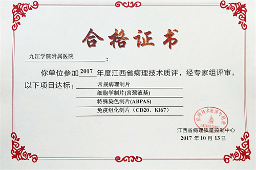 本次室间质评对象为全省各级医院及医学检验机构,均按国内最高标准及评审理念执行。临床医学院/附属医院病理科以优异的成绩通过了此次室间质评,并获得了专家组的一致好评。在本次质评中,病理科徐晓主任被聘为“江西省病理专科联盟-病理医生集团首席专家”。此外,该院病理科有4人被聘为“江西省病理专科联盟病理技术专家委员会常务委员”。
