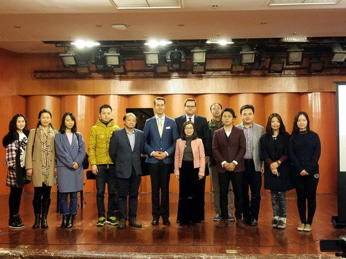 应成都捷克领事馆和四川音乐学院的邀请,12月8日下午3点,我校艺术学院理查德∙波尔博士与王荇荇博士在四川音乐学院的聂耳音乐厅举办了两个半小时的交流讲座,成都捷克领事馆的Tomas Hlavan先生、钢琴系副主任杨成刚教授等出席了讲座。