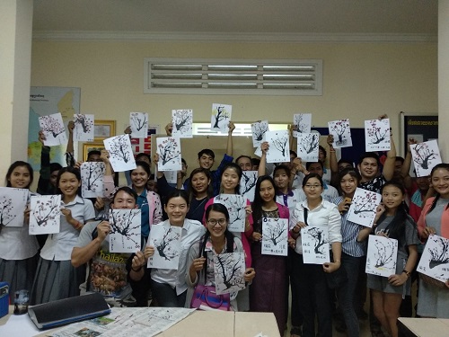 参加此次活动的桑美秀(Som Sokkeav)同学表示:我看过很多中国画,虽然觉得很美,但是看不懂,也从来没有画过。这次在汉语中心参加活动,不但体验到了中国艺术的美感,也亲自画了中国画,收获很大。(文/赵丽萍  摄/张颖 李智)