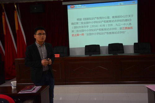 会议伊始,九江市知识产权局局长胡雄彪致辞,他强调了中小学知识产权教育普及的重要意义,希望我市的中小学知识产权教育能够做到“教育一个学生、带动一个家庭、试点一个学校、带动一片学校”的积极效应,进而形成“万众创新的氛围”。