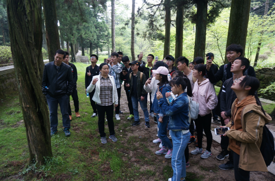 实习期间,学院邀请了世界地质公园管理办公室谢玲超副主任作为实习指导老师。谢主任以“珍惜自然资源 呵护美丽国土——讲好我们的地球故事”为主题,结合多年的工作经验,为本专业进行了一场生动的野外实地现场教学,讲述了庐山地质公园的地质地貌概况、地质形成历史、庐山的生物多样性、动植物资源情况、庐山近代别墅群的历史沿革以及规划园林设计建设等内容。