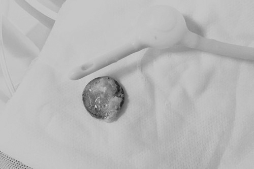 对于如何取出硬币,游医生介绍说,小儿食管异物取出比较棘手,例如这位3岁患儿,来院就治时已距误吐硬币达6小时左右,异物刺激强烈,难受哭闹,很难配合治疗。以往这种情况多采用全麻下硬质食管镜取食管异物,患者甚至需住院两至三天。从今年5月以来,临床医学院/附属医院开始利用导尿管来取小儿食管异物这一新方法,现已成功治疗了数十名误吞异物的小朋友。因为导尿管柔软细小,引起咽反射轻微,不会引起患儿的较大恐惧感, 在表麻或者局麻下即能配合,手术安全高效。大部分情况下也不需住院,花费明显减少。