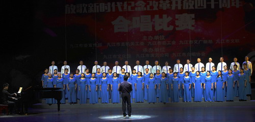 此次合唱比赛是为了深入贯彻落实党的十九大精神以及习近平新时代中国特色社会主义思想,展示改革开放四十年取得的巨大成绩和人民生活发生的翻天覆地的变化,表达九江人民对美好生活的向往和追求,全市及各县(市、区、山)行政企事业单位共计19支队伍参加。