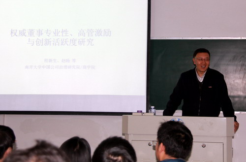 程教授首先分享了自己在公司治理与创新研究方向的研究成果和心得体会。结合理论和实证深入探讨了技术董事权威、管理层激励与创新活跃度之间的关联性及其相互影响的内在机理,分析了权威董事专业性、高管激励对企业创新活跃度的综合影响,利用上市公司数据检验了高管激励的中介作用,得出了董事专业性在高管薪酬设置中发挥建议咨询作用的结论,以及企业更需要在合理范围内提升高管长期激励,方能更大程度上鼓励高管的创新行为。