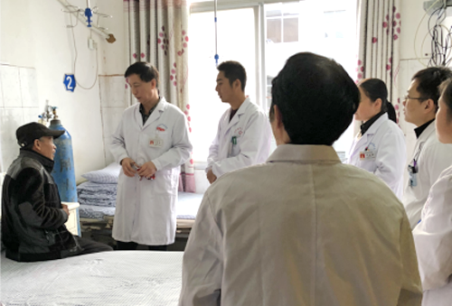 专题讲座外,中医部刘成部长、心内科吕新胜主任医师和神经内科何云霞主任医师等还进行了病区查房和现场义诊。专家们帮助对在院的多位肺心病和脑梗死恢复期患者进行了查房,对卫生院医师作出了专业指导。义诊现场,咨询、就诊的群众排起了长队,队员们有条不紊的帮助他们进行分诊和诊疗。瑞昌籍专家用家乡话和当地群众交流,进行病情分析和健康宣教,大家表示这样与专家沟通交流非常亲切,尤其对于多数年龄较大的患者,完全消除了言语沟通的障碍,效果甚好。