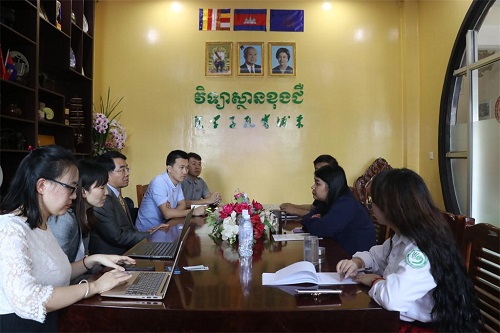 柴克清院长代表柬埔寨孔子学院向西北工业大学代表团的到来表示热烈的欢迎,并为代表团一行简要介绍了柬埔寨孔子学院的发展历程、教师队伍、教学条件、学生来源、教学层次、孔子学院下设各教学点大致情况以及已开展的文化活动和学术研究交流活动等,苏碧娜院长向代表团成员提到2019年是柬埔寨孔子学院成立十周年,柬埔寨孔子学院将要举行十周年庆典的相关事宜,代表团听后对孔子学院所取得的成绩和发展规模表示赞叹和充分的肯定。
