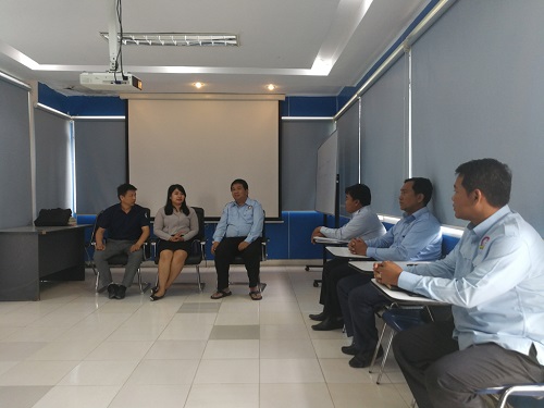 1月26日上午,柬埔寨皇家科学院孔子学院柬方院长苏碧娜(Vuth Sopheakna)、中方院长柴克清、公派教师户社芳、黄青山一行前往茶胶青年联合会汉语中心访谈慰问。茶胶青年联合会汉语中心负责人何索昆(Heng Sokun)先生和汉语教师志愿者王鹏给予了热情接待。