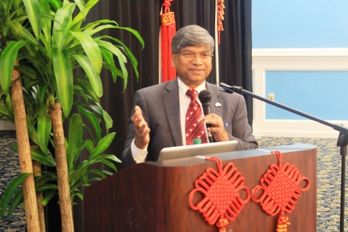 哈姆萨·托特博士(Hamsa Thota)作了一场关于孔子学院和中国文化的精彩讲座,与现场观众提问互动,气氛十分热烈。宾客们对中国文化的兴趣远远超出预期。