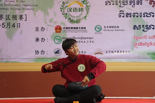 “汉语桥”是由孔子学院总部/国家汉办创设的全世界中文学习者的活动,在中国与世界各国青年之间架起了一座沟通心灵的桥梁。本次第十八届“天下一家”——“汉语桥”柬埔寨赛区预赛金边赛区共选出12名选手晋级,与柬埔寨棉芷赛区1名晋级选手共同进入决赛的角逐。(文|周嘉利 摄|王诗雨)