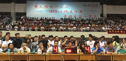 经过20多天的激烈角逐,5月17日晚篮球联赛式落下帷幕。九江学院副校长陈春生、校团委书记闫来英、体育学院院长段宝斌、学生处副处长项忠平等相关领导出席了本次闭幕式。闭幕式上陈春生副校长为本次比赛致闭幕辞,他认为本次比赛组织严密,同学们积极进取、顽强拼搏,比赛精彩纷呈。