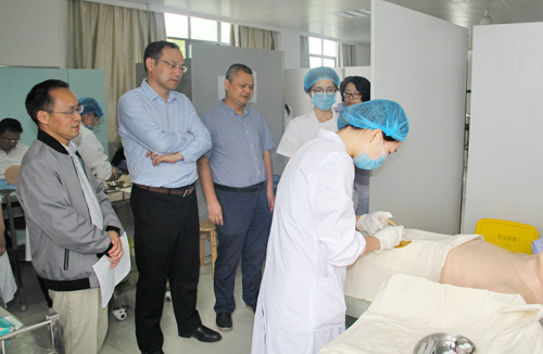 为全面评价学生基本技能、临床知识的综合应用以及临床思维能力,5月28日至31日,临床医学院/附属医院教学管理科组织了2014级临床医学本科专业学生毕业技能多站考试。期间,该院党委书记张南华,党委副书记、副院长殷小平,副院长胡志坚等带队巡视考场,教学管理科科长洪永春、临床技能中心主任韩峰等陪同巡考。