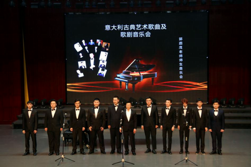 音乐会接近尾声,郭泗茂老师亲自上台演唱了意大利民歌《啊,我的太阳》和意大利作曲家威尔第的歌剧《路易莎.米勒》中的男高音咏叹调《往昔的夜晚多么宁静》(特邀王祖君老师钢琴伴奏)以及合唱《登山缆车》。郭老师激情的演唱给现场带来了热烈的气氛,把音乐会推向了高潮!