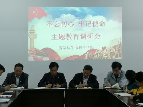 为扎实开展“不忘初心、牢记使命”主题教育,10月15日下午,副校长杨耀防深入药生学院开展主题教育专题调研活动。药生学院党委书记鲍海鸥、院长张小谷、副院长余敬谋、学生科全体老师及各班级学生代表参加会议。