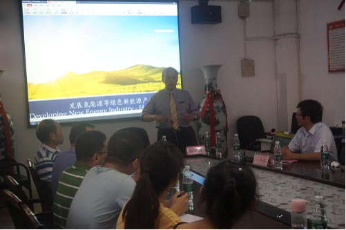陶博士作了题为《氢能源等绿色新能源产业发展研究》的报告。他分别从氢燃料电池原理和技术、制氢和储氢技术等方面阐述了氢经济的全球商业化,突出了其团队零碳经济的绝对优势。通过对我国氢燃料电池的国家政策解读,进一步指出中国实施开展氢经济商业化的优势,并表达期望同我校加强产-学-研一体化合作。最后,陶博士与大家进行了积极的互动,部分博士请教了一些关于氢燃料电池产业化的疑惑和困扰,陶博士均做了详细的解答。陶博士的报告深入浅出,内容丰富,启发性强,既有指导性又接地气,让参会师生们受益匪浅。