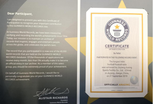 此次比赛有来自全国各地26支代表队600名选手前来参赛。我校有十名选手参加了此次比赛。面对来自全国各地的代表队,我校选手积极对抗,手法娴熟,表现出了顽强拼搏、奋勇争先的体育精神。共摘得三金一银三铜的好成绩。同时,我校选手们还积极参与了由“九星运动”制作的“世界最长的桌式足球台”吉尼斯世界纪录活动,所有参与者均获得了由吉尼斯世界纪录官方所颁布的吉尼斯世界纪录参与者证书。