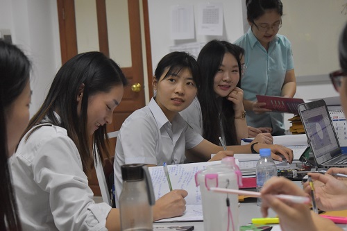 为了更好地了解教学情况,提高教学质量和教师教学能力,柬埔寨皇家科学院孔子学院亚欧大学中文系全体教师于11月29日下午在亚欧大学中文系办公室召开了本学期的第一次教学座谈会。此次座谈会由中文系负责人、公派教师甘敏组织召开,其余4位公派教师及10位汉语教师志愿者到场,共同进行交流讨论。座谈会分为志愿者教师分享、公派教师分享、全体教师共同讨论三个部分,老师们针对教学中遇到的问题进行了详细讨论,积极思考与交流,提出了多种解决对策。此次座谈历时2个半小时,气氛热烈,效果显著。