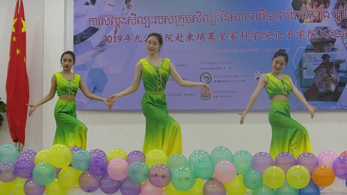 柬埔寨皇家科学院孔子学院于2009年正式在这片古老而又年轻的高棉大地落地生根,并在一代又一人的努力下蓬勃发展,终于在今年迎来了属于自己的第一个十周年。为了庆祝十周年,助力汉语教学,传播中华文化,增进中柬友谊,柬埔寨皇家科学院孔子学院特邀九江学院文化艺术团来柬进行文化巡演和交流。