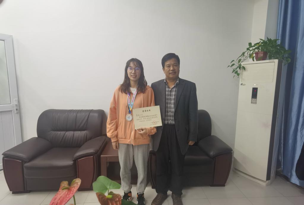 得知喜讯后,副校长陈春生特意来到文传学院看望姜晗同学,与其亲切会谈,并授予该同学“文传学院体育特别贡献奖”。