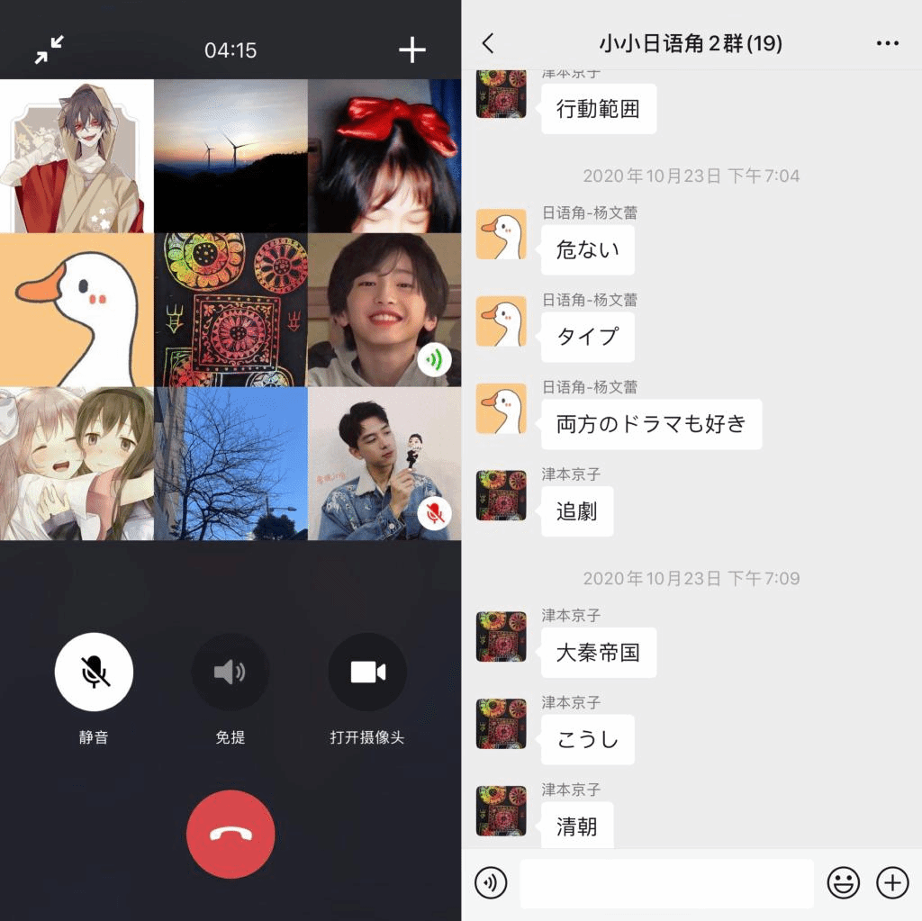 (日语角2群:津本京子老师正在与学生进行线上语音交流)