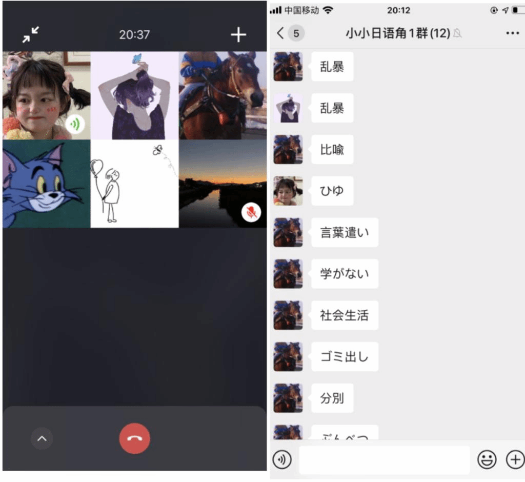 (日语角1群:大土一雄老师正在与学生进行线上语音交流)