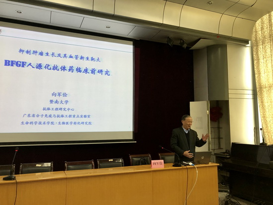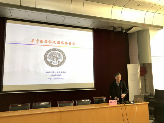 论坛活动中,向军俭教授作了题为“BFGF人源抗体药临床前研究”的主题报告。他介绍了国内外抗体药研究的最新进展和发展趋势,并分享了他多年来对科学、技术和艺术三者关系的思考;周小军教授就医学论文撰写的技术和参会学者、学生做了深入的交流,详细阐述了论文撰写的科学性、创新性、实践性和文学性四个方面的技巧和注意事项。