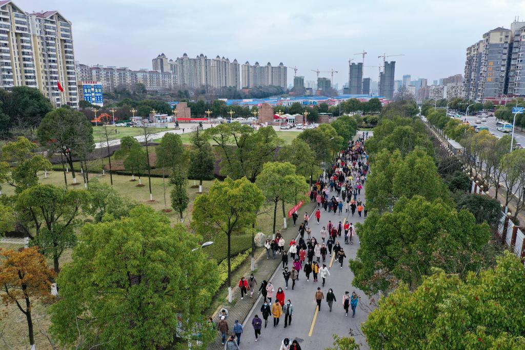 3月9日下午,伴随春天的脚步,随着“两会”在北京的胜利召开,“三八”妇女节如期而至。为纪念第111个三八国际妇女节,学校工会举办“巾帼心向党,奋进新征程”为主题的三八国际妇女节环校园健身跑活动。校党委副书记魏立平到场为特等奖获得者颁奖。来自全校各个单位部门的女教职工400余人参加了本次活动。