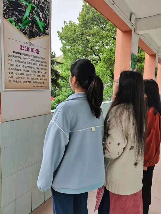 二楼走廊制作的是与各专业结合的各类植物的相关图片,主要内容为紫竹梅、蝴蝶兰、彭泽贝母、海棠、使君子等植物信息。