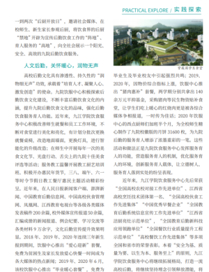 省教育厅综合服务处处长胡若峰在讲话中对九江学院取得的突出成绩表示高度认可;江西高校后勤协会伙专会会长汤颖松代表江西高校后勤协会对大会召开表示祝贺,并对伙专会下一步的工作表达了殷切期望;会议还提请审议了2020年伙专会工作报告和2021年工作思路汇报;中国教育后勤协会伙食管理委员会副主任兼秘书长、中国人民大学党委委员、后勤集团总经理宋大我作了《“惜‘食’如金,不负‘粮’心”》为题的专题报告;会上还对45个餐饮工作先进集体和171名先进个人进行了表彰。