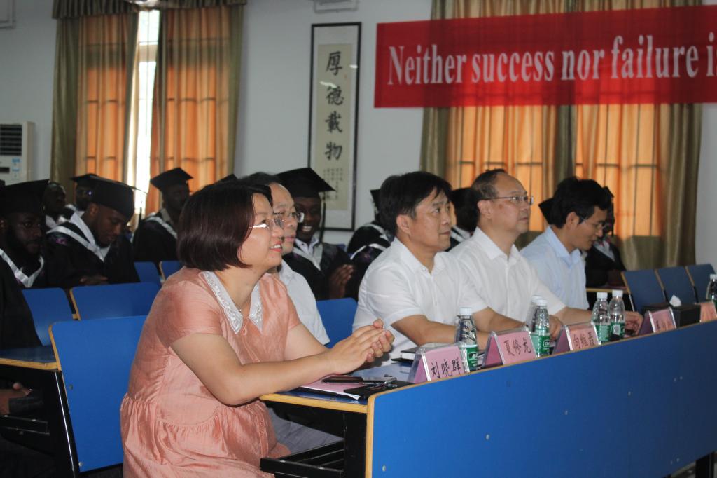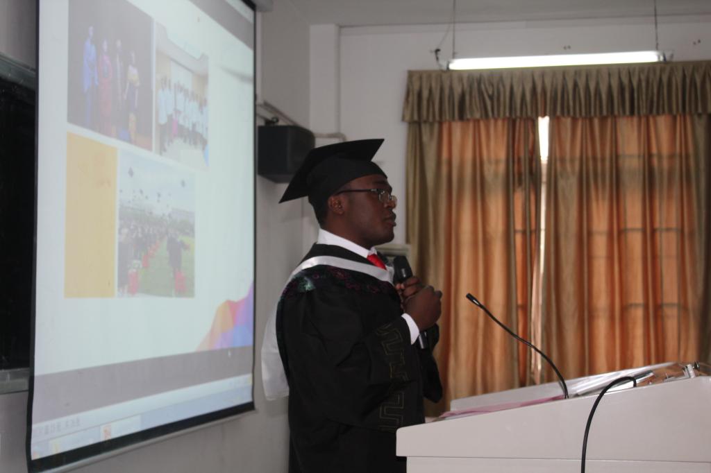 喀麦隆籍留学生ROMEO和加纳籍留学生FRANCIS 作为优秀毕业生代表发言。他们表达了对母校深深的感激之情和浓浓的不舍之意,他们表示,毕业后要继续努力学习,将用在校学习到的医学知识去帮助更多的人,去服务自己的祖国。同时,要把自己在中国和母校所学和所感告诉更多的外国朋友。他们祝愿母校越办越好,祝中国越来越强大。