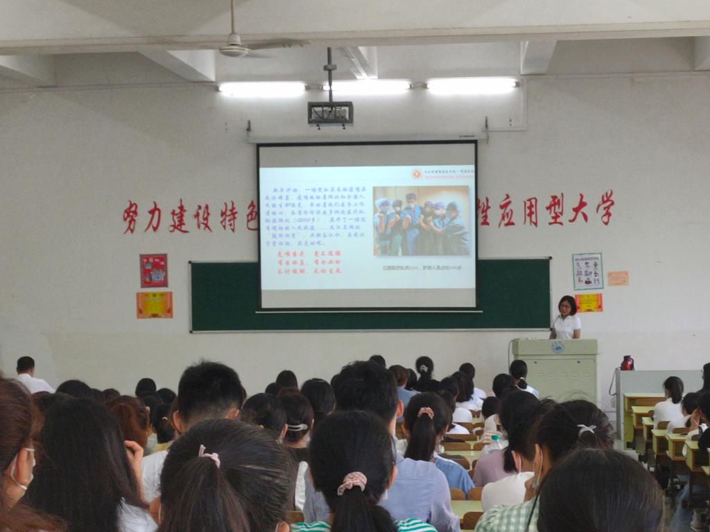 红色细胞,青春党建。9月11日,我校护理学院红细胞课堂举行新生入学教育战疫思政课,邀请杰出校友、全国抗击疫情三八红旗手、九江学院附属医院护理部大科护士长谢卫回校为新生深情讲述战“疫”背后的故事。护理学院全体2021级新生聆听了报告。