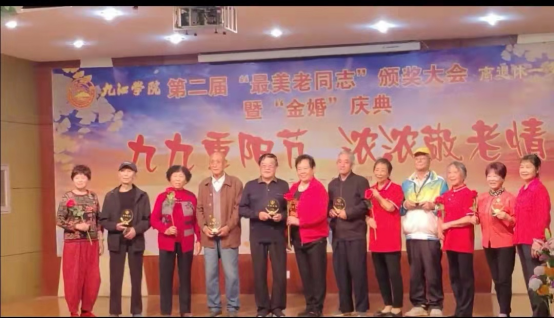近日,为弘扬尊老、爱老和敬老的优良传统,我校离退休各支部分别组织在浔的老同志举行了2021年度九江学院第二届“最美老同志”颁奖大会暨金婚庆典活动。本次活动中,全校评选出了陈浩恒、辛志芳、袁恩娣、冷占魁、都述志、杨光田、李辉虎、周尊铭、潘治富等9名“最美老同志”及34对金婚夫妇。