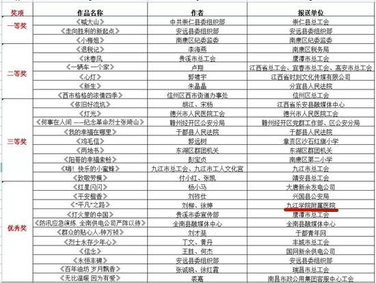 九江学院附属医院喜获江西省第三届职工网上艺术节微电影类优秀奖