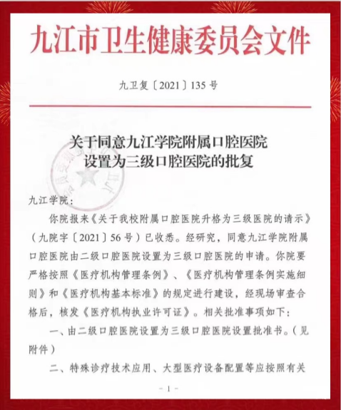 喜讯!九江学院附属口腔医院获批设置三级口腔医院