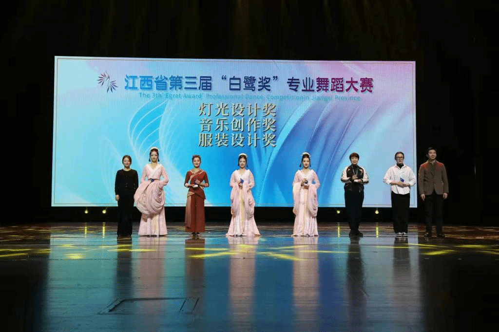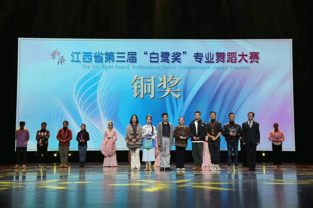 12月15日晚,由省文联、省舞蹈家协会主办的“白鹭奖”专业舞蹈大赛在江西艺术中心大剧院举行。由我校艺术学院贺嘉佳老师编舞,张栗娜、付文睿老师指导的群舞作品《瑶光赋》以全场第2名的好成绩进入决赛,最终获得银奖;由孙公伟老师表演的独舞《黎明之前》获得铜奖。此外,这两个作品还分别获得“最佳音乐创作奖”“最佳服装设计奖”两项荣誉称号。