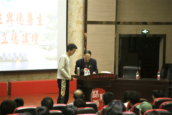 3月14日,医学院开展了第十二期“德先生与德医生”九医立德讲坛,邀请九江学院退休教授、九江市关工委报告团副团长陈忠作为主讲人,以“我的读书故事”为主题作了报告,激励同学们要好好读书,注重心理健康,珍视生命的正向价值观。