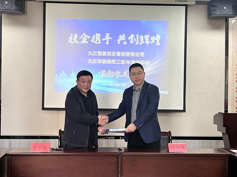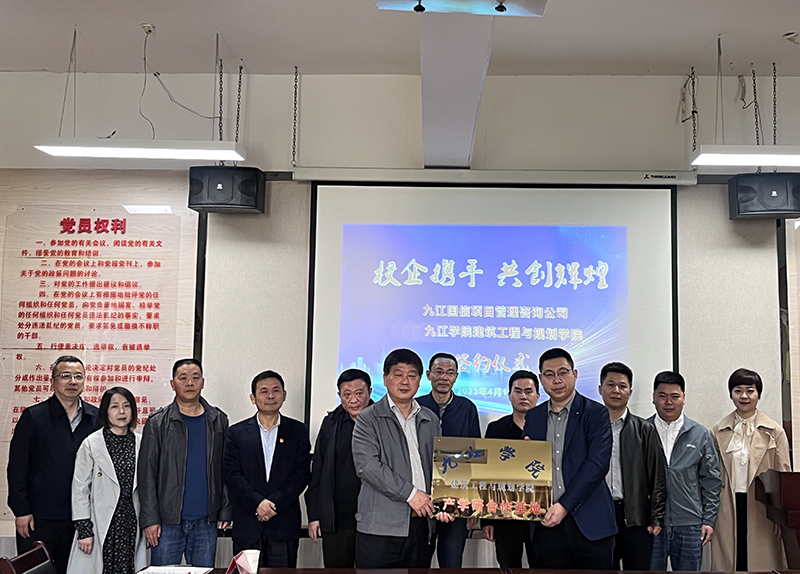 4月11日上午,建筑工程与规划学院与九江市国信项目管理咨询有限责任公司在望庐楼211举行了校企合作签约仪式。副校长夏启国出席签约仪式。市国资委监事会主席曾昭宏、国信公司执行董事兼总经理邱同岗、副总经理柯兴旺、技术总监龙澄宇、建工学院党政班子全体成员参加签约仪式。