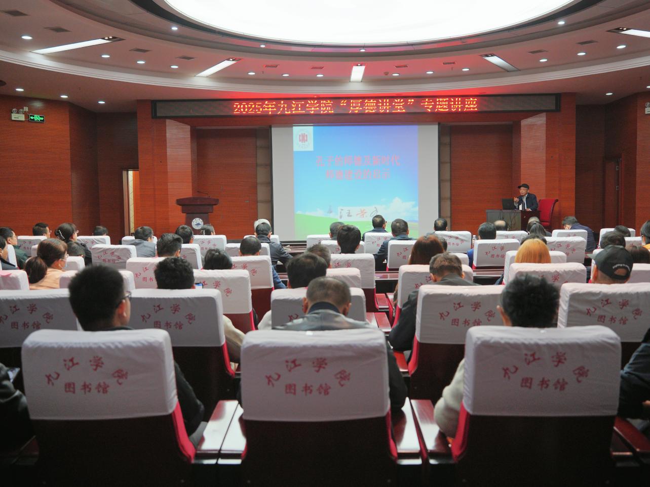 为深入学习贯彻习近平总书记关于教育的重要论述及《教育强国建设规划纲要(2024—2035 年)》精神,扎实推进教育家精神铸魂强师行动,10月23日上午,九江学院第三期“厚德讲堂”专题讲座在逸夫图书馆报告厅举行。校党委委员、副校长王殿元主持讲座。